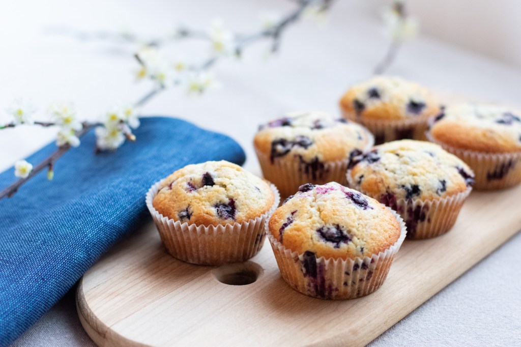 Tuoreitakin mustikoita voit toki käyttää. Varo rikkomasta niitäkään. Muffinssien väristä tulee silloin ruma.