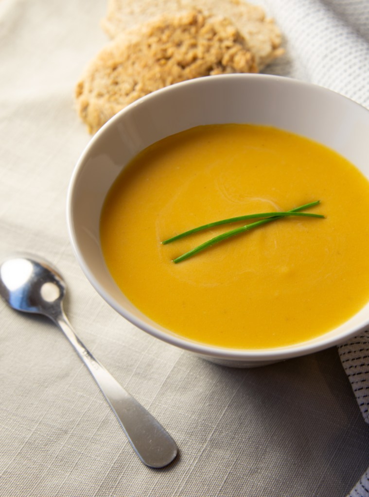 Pehmeä mausteinen bataattikeitto.