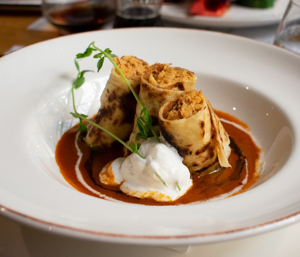 Otin ravintola Antré ssa perinteisen täytetyn pannukakun. Olin kyllä odottanut vähän mausteisempaa ruokaa, mutta todella hyvä ruoka oli kuitenkin. Paprikaakin täytteessä oli. Luulin saavani ison liian täyttävän Döner- tyyppisen jättiwrapin, mutta annos oli ihan sopiva. Muistutti hiukan suomalaisia täytettyjä lettuja, sellainen hienostuneenpi versio. Jauheliha oli jauhettu hyvin hienoksi.