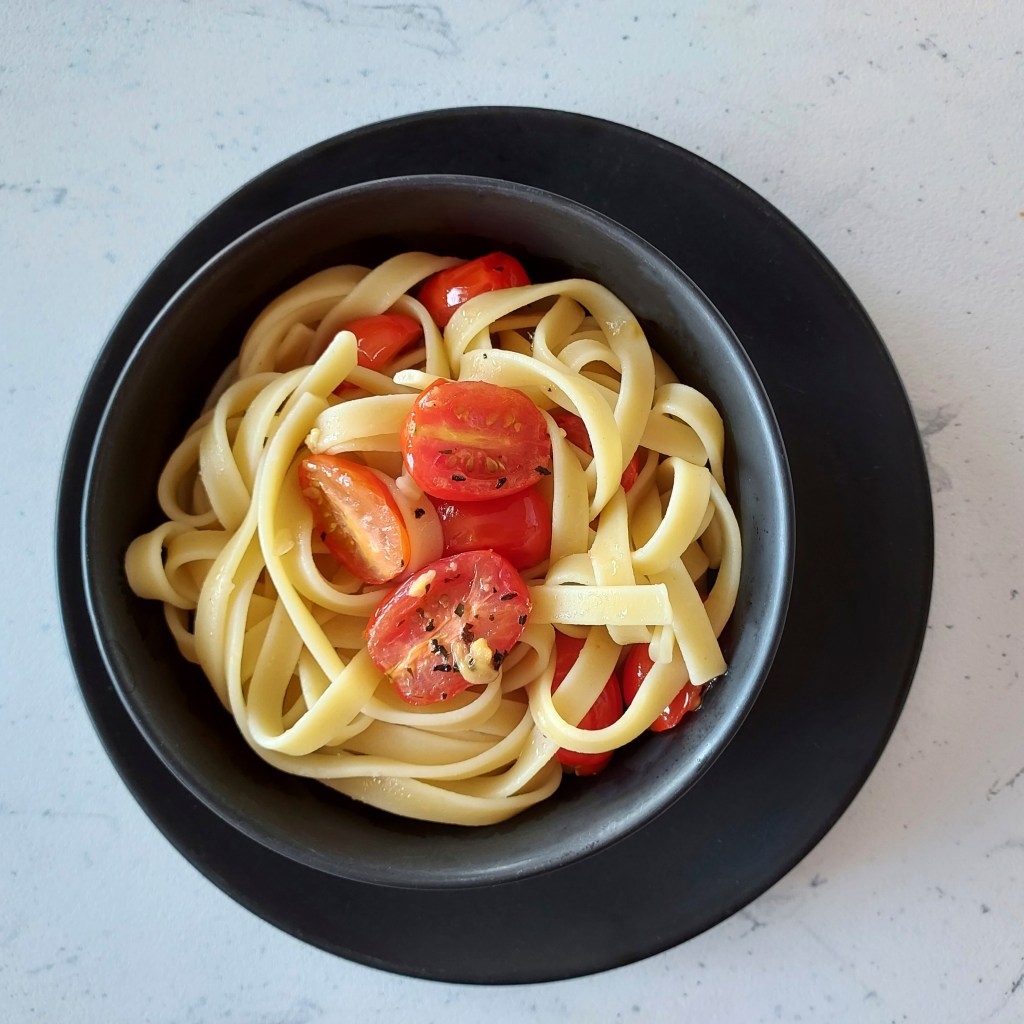 Laita grillatut tomaatit pastan joukkoon ja sekoittele.