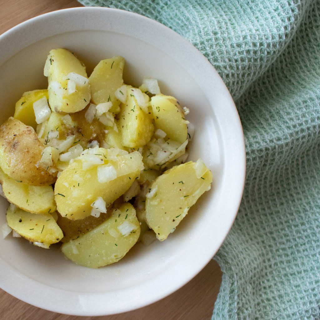 Perunasalaatti uusista perunoista. Tarjotaan kalan ja vihersalaatin kanssa.