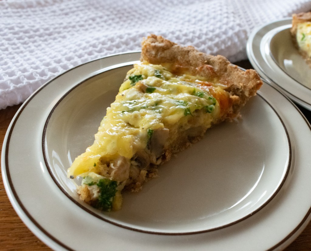 Sienipiirakka herkkusienistä. Pohjassa reilusti ruista.